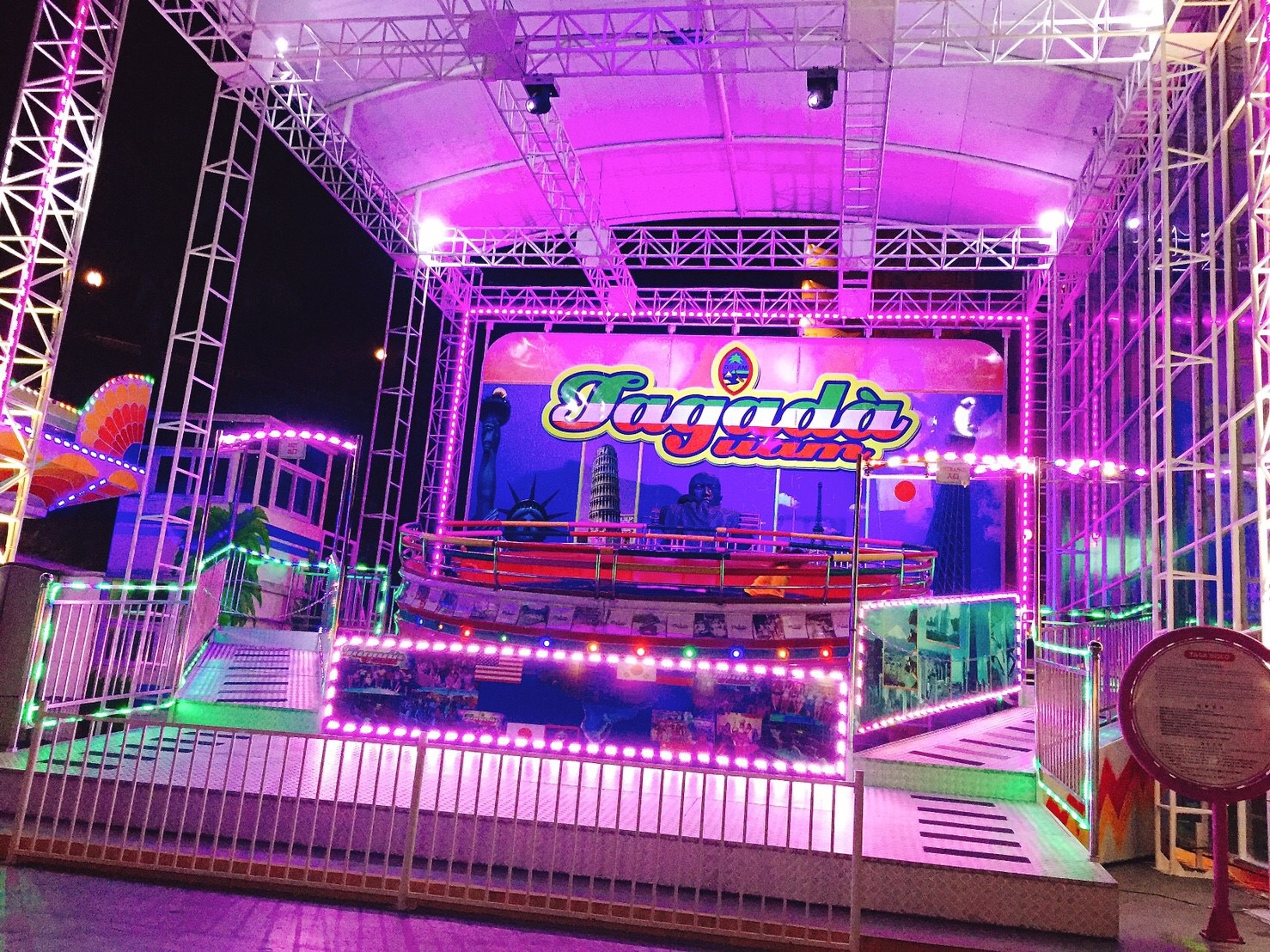 現地のヤング達と一緒に乗りましたがとにかく激しい。これ、回るんです、ベルトもなにもつけずに座って回るんです。それが本当に怖いのです!キャー!ギャー!って声にならない声でみんな落ちないように必死にしがみついてました〜ヽ(;▽;)ノ