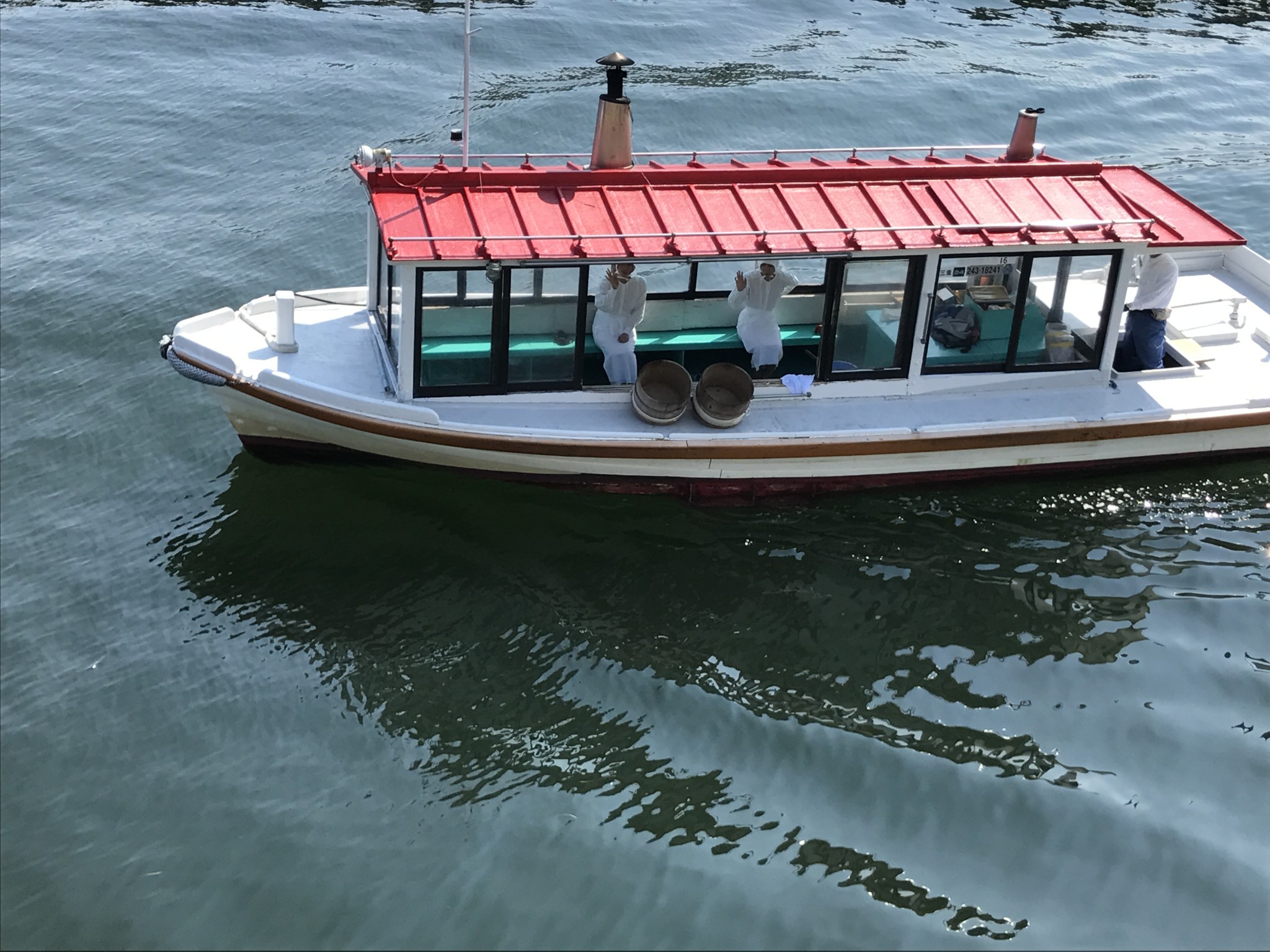こちらに手を振る海女さん方。