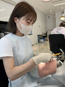 マネキンさんを使っての実習がほとんどなので、治療の腕があがります。