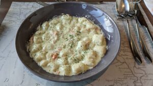 メインはパスタ、院長はジャガイモのニョッキにしました。パンも付いてきて…